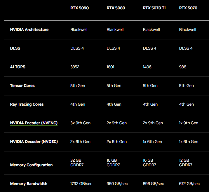 As we see here, the RTX 5090 is the most powerful of this generation, and we will get into which cards are the best bang for your buck upon launch. The RTX 5080 comes second with enhanced specs making it the second best performing card on the charts. The RTX 4070 and 4070 Ti both come in as the lowest performer and second lowest. That doesn’t mean they can’t produce powerful graphics though.